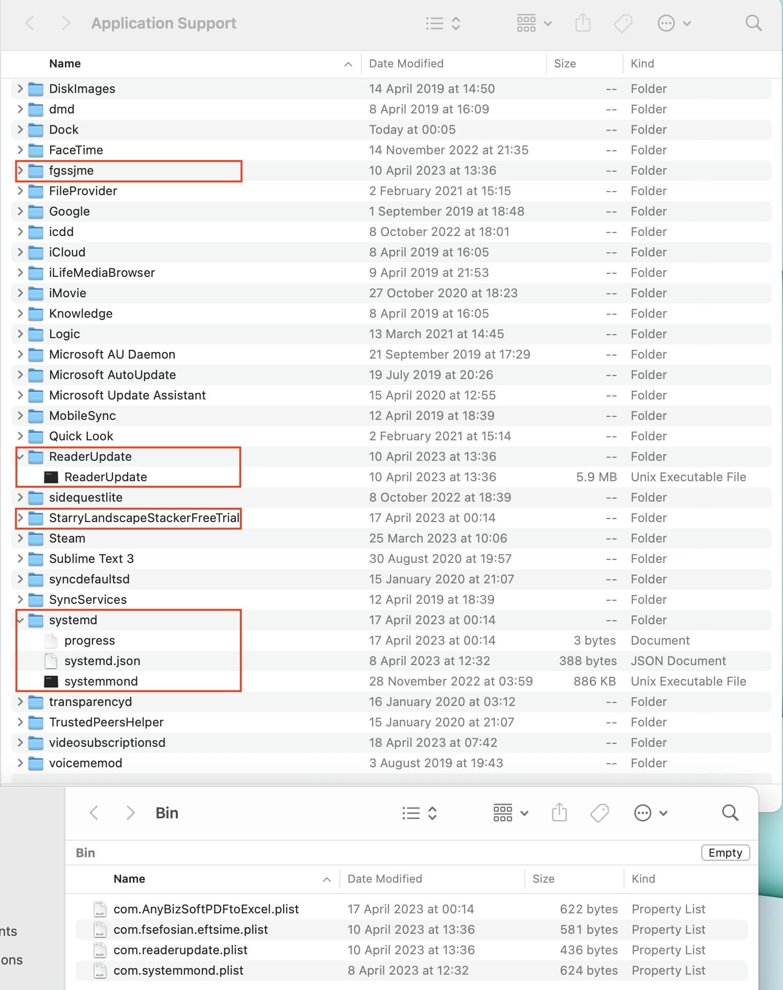 It is normal for that folder to contain many items, but anything associated with the above adware may contain identical names. If you find a folder or folders bearing those names, drag those folders to the Trash. Without the files you already removed or the reintroduction of similar malware, they can do nothing but occupy space. These can be removed if you wish, but again don't remove anything if you are uncertain.