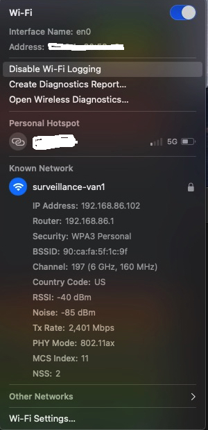 Be sure to include your Mac model, screen size, and model year, and your version of MacOS. It would be helpful to include an Option-WiFi snapshot as well.