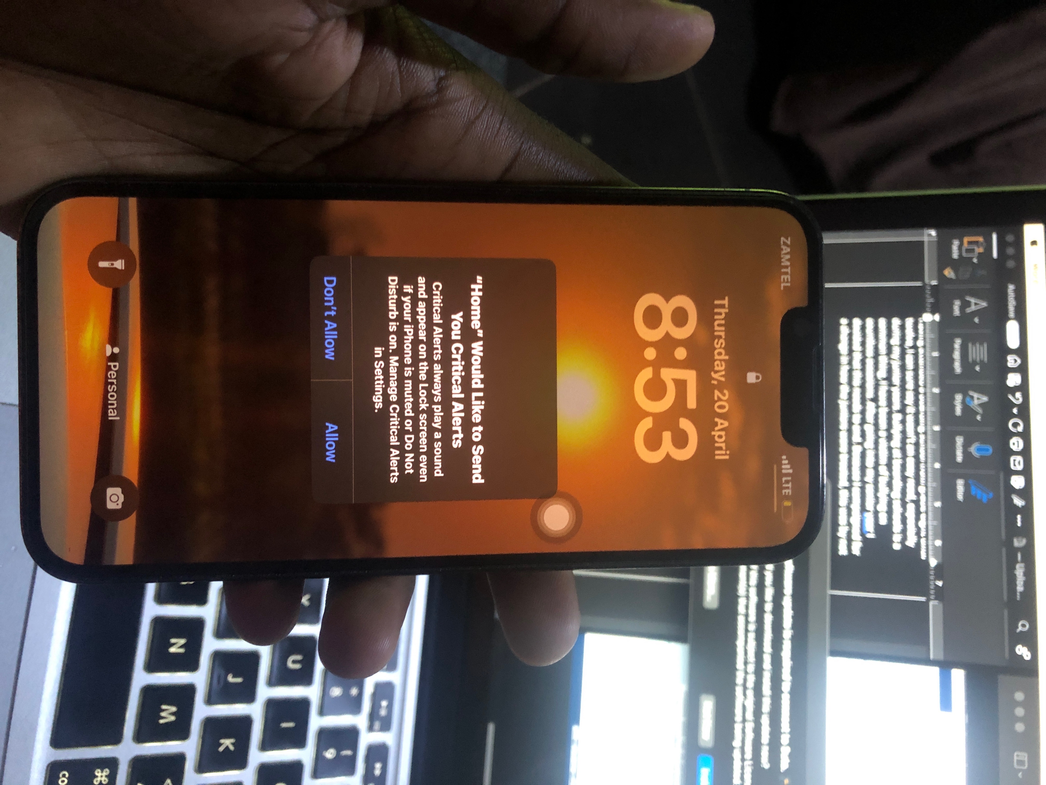 I can’t click anything on my other iPhone because of a pop up that says home would like to send you critical alerts.