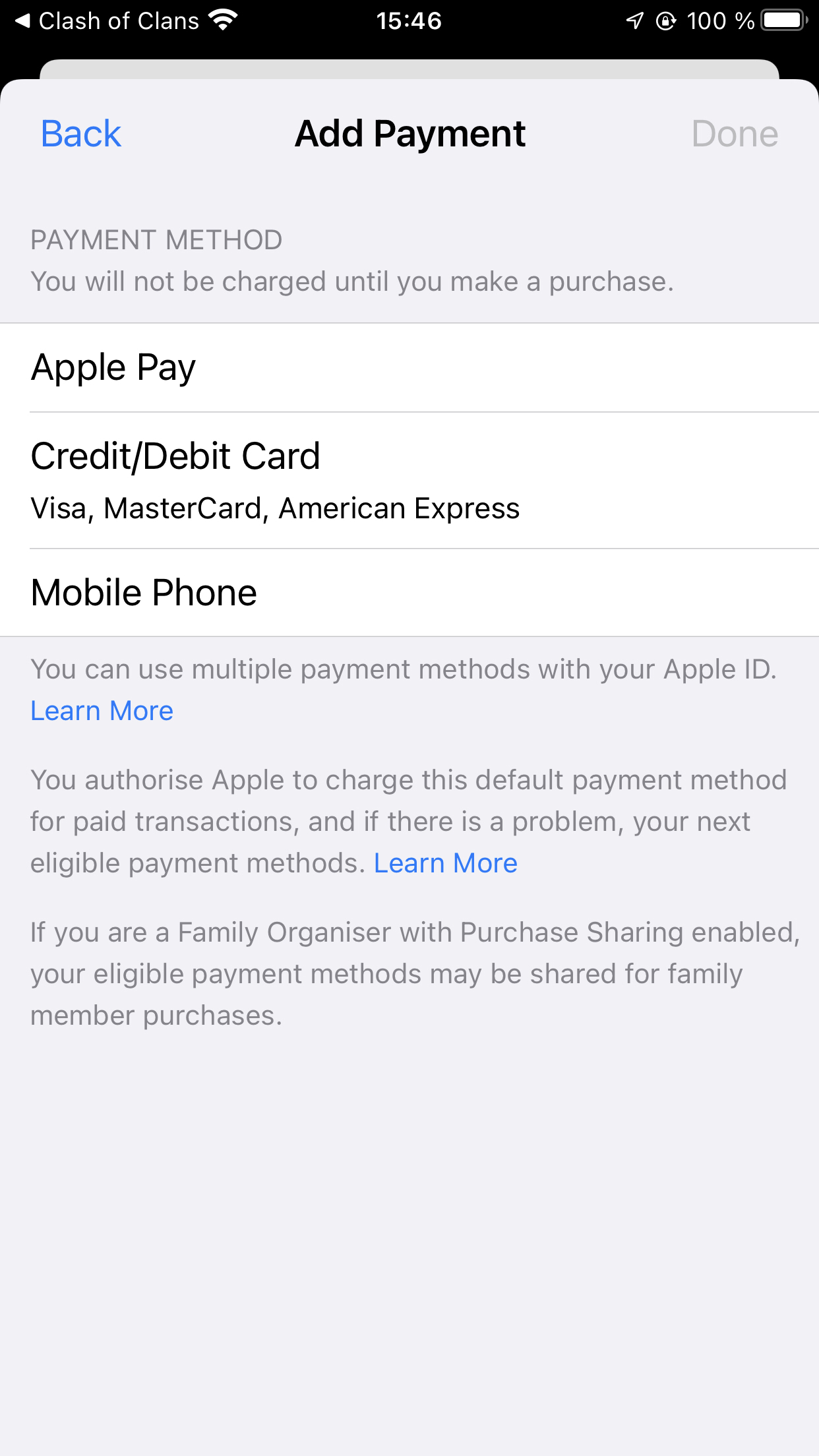 ● If you're in a Family Sharing group, purchases are charged to your personal Apple ID balance. If you don't have enough Apple ID balance to pay for the purchase, the remainder is charged to the family organizer's primary payment method.
