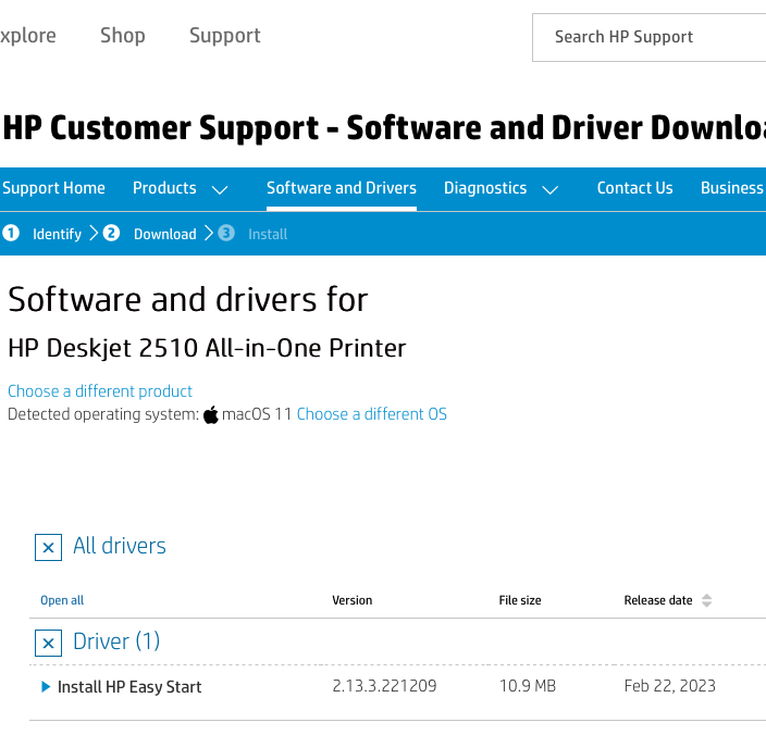 mac book air with macos 11.01 is no longer working with hp deskjet 2510. Error message "missing USB class driver" is showing