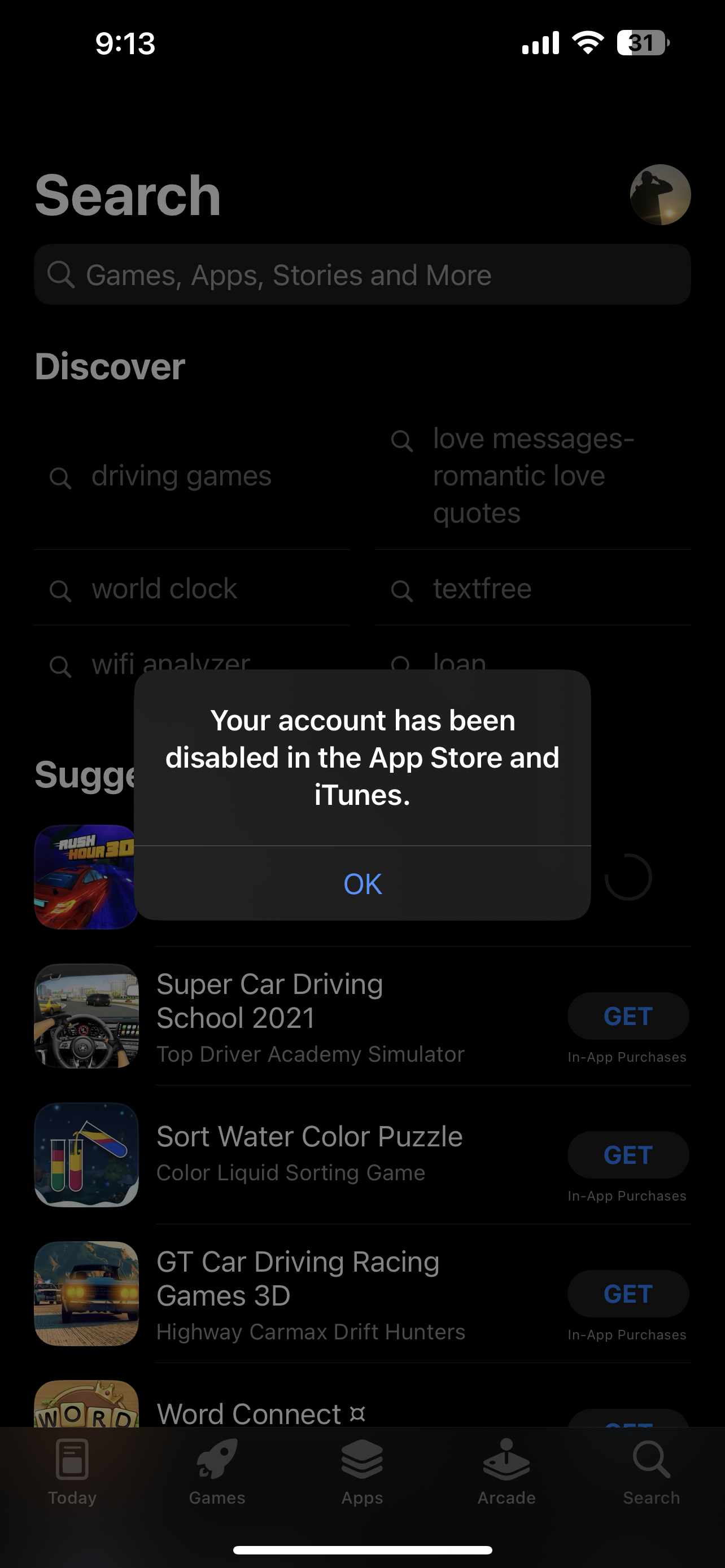 If you see a message that says "Your account has been disabled in the App Store and iTunes", there is a problem with your payment method on your account, to resolve the problem you need help from Apple support, click -> contact Apple Support for help.