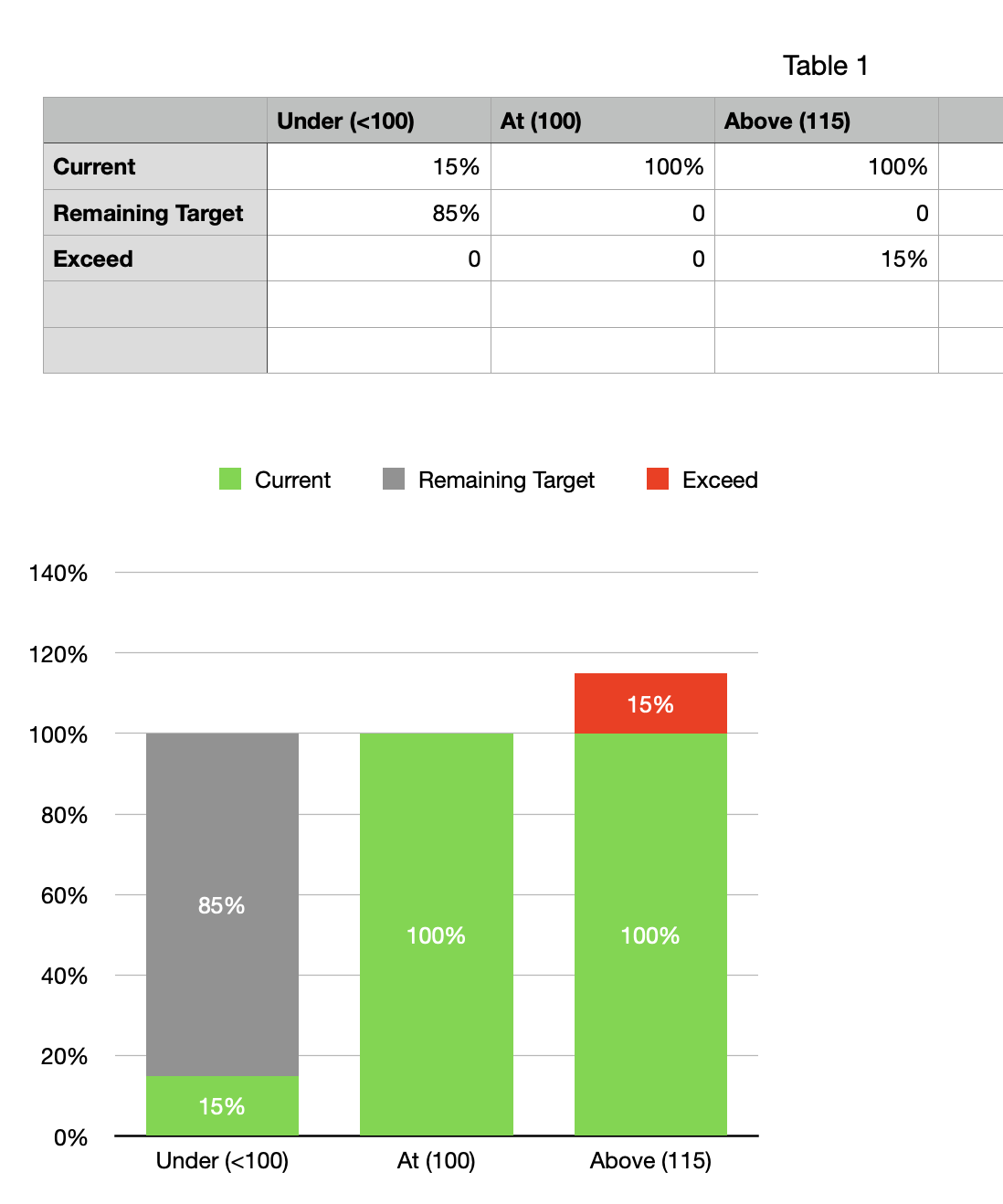 I just wanted it to show 100% on reaching the target balance. And thanks to ChatGPT, the answer was using the IF statement.