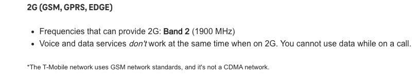 Most of your information was spot-on. I just wanted to correct mostly the misunderstanding with T-Mobile 2G as well as clarify details regarding 4G and 4G LTE non-VoLTE network access.