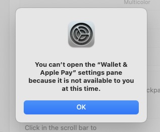 So after setting up my Mac Studio I noticed the next day the Wallet & Apple Pay setting was missing, I did a search for it which came up leading to settings, when I clicked it this window came up. Funny thing is it shows up in notifications and I receive them. I was with Apple Support for hours leading to reinstalling the system software, still didn’t work. I have to return the call and give them the information. According to Apple they are not seeing this error under Ventura but it was in the prior OS, but apparently per social media others are also seeing this. I’m. It sure if I’m willing to do a complete erase and reinstall for this. I’m also see some apps notifications settings not showing up in that particular pane.