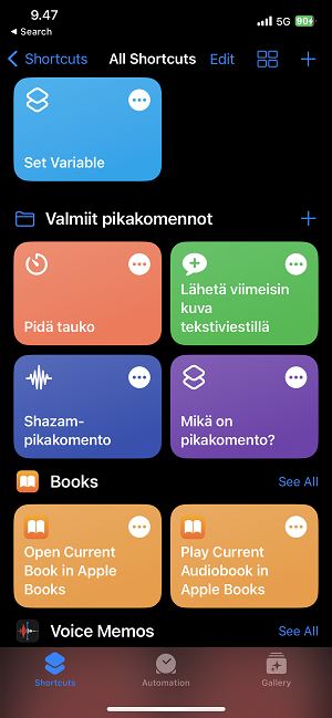I changed my iPhone’s language from Finnish to English. Everything else went just fine but the Shortcuts app now looks weird, with two languages mixed. I have never used Shortcut so there’s nothing made by me: the things displayed in wrong language (previous language, Finnish) are default examples pre-installed by Apple − seems more like a bug than a feature. It would be correct if I had created or downloaded something there, but everything was just default.