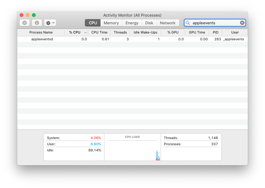 Apple Events Server is part of the operating system. The daemon/software for it is always running:
