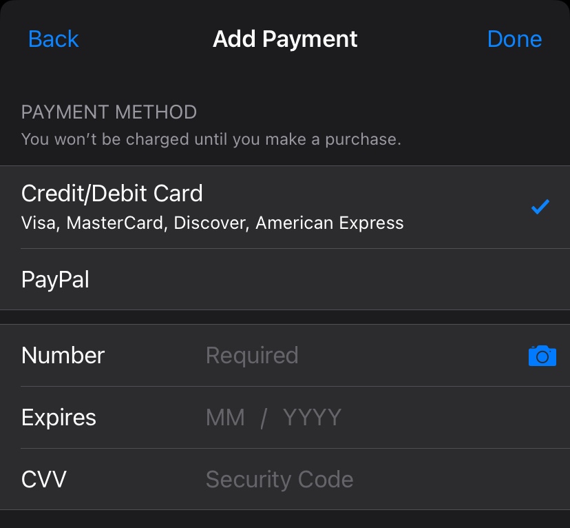 If you don't have a credit card or don't want to use a credit card, you can also use your Apple Account balance as payment method.