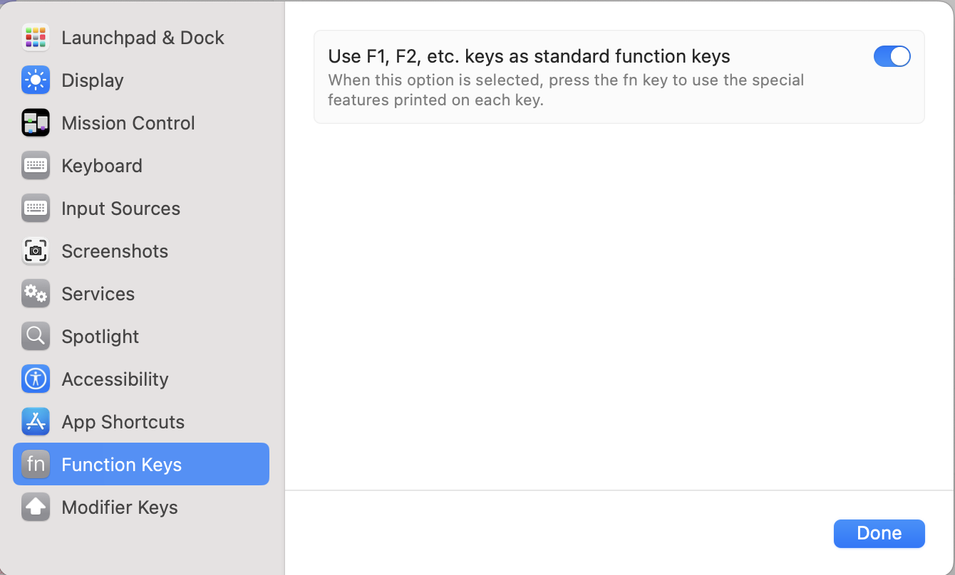 Now I have to press the Fn 🌎 key to access the function printed on the function keys.