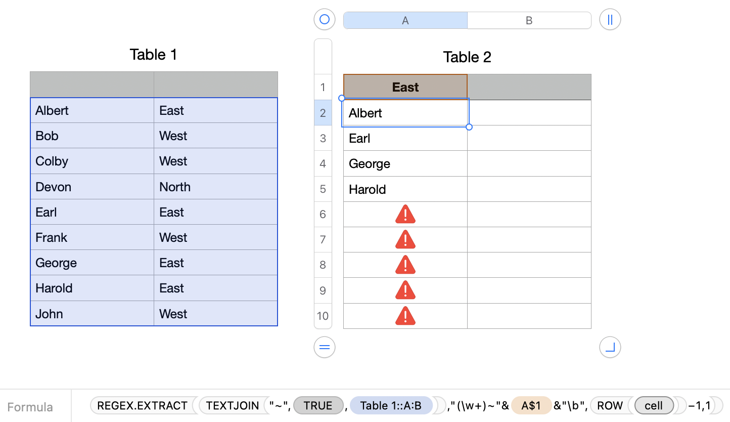 Automating a table from data in another table in Numbers for Mac