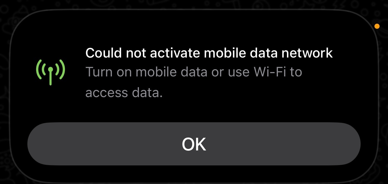 my mobile is already on but i am not having any internet connected in my iphone 14 pro max, i already reset all the setting and already open a case with airtel as well. i am getting the second image message