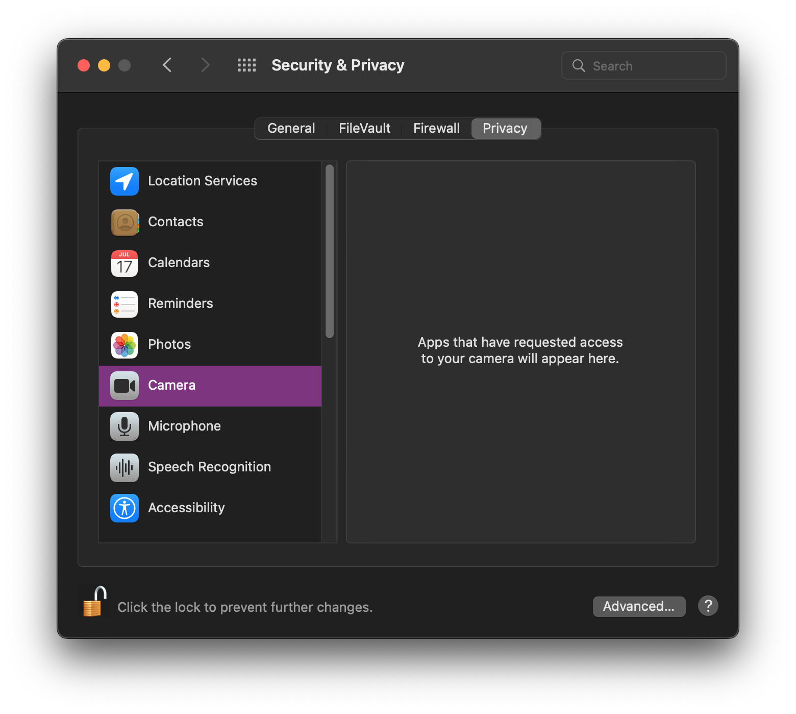 Graphical user interface for camera permissions, there it is. Now please explain to me how to apply the apple instructions for operating it?