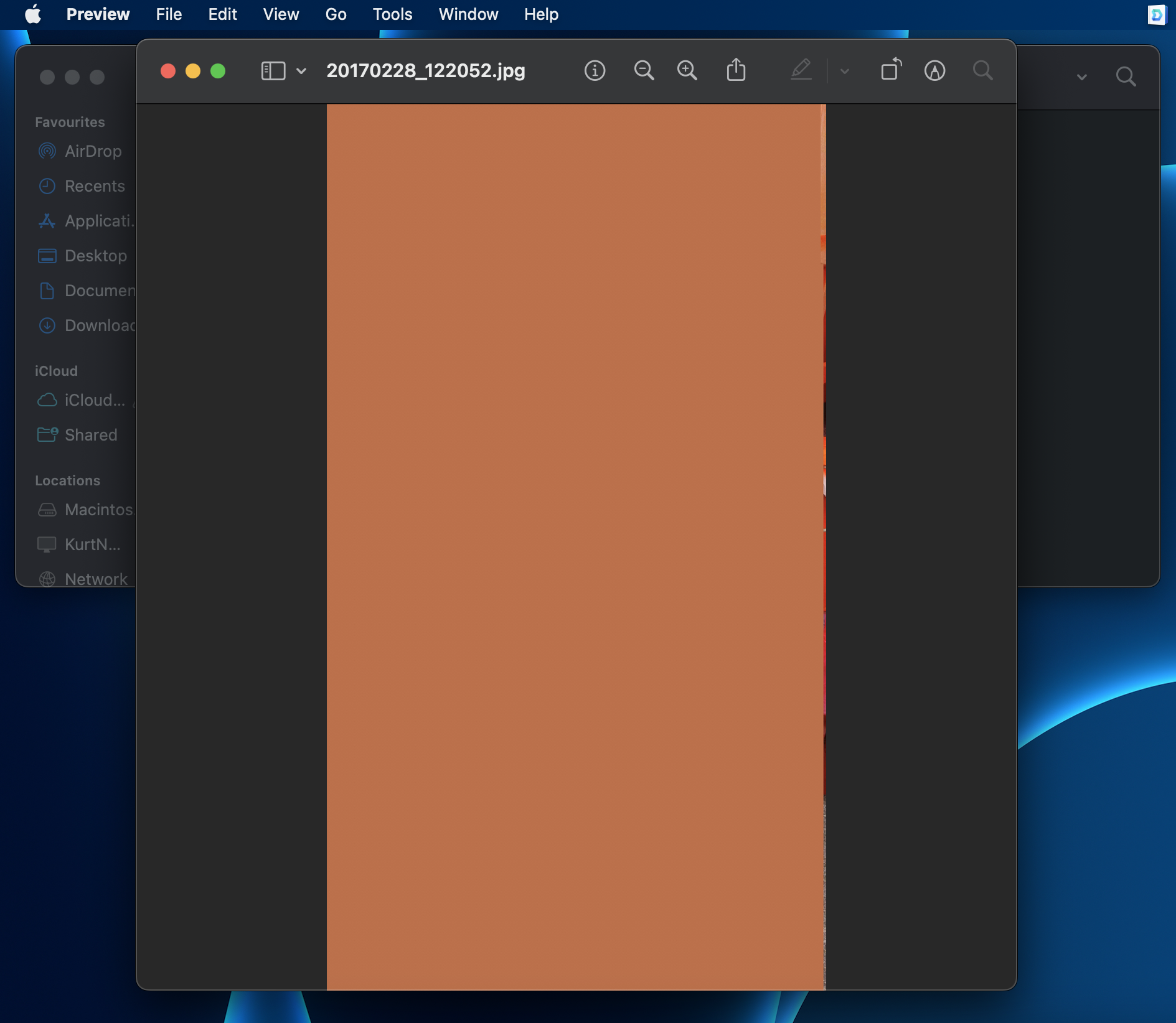 When I try to access some .JPEG images that are being stored on it, Preview says: "The file “IMG_5326.JPG” and "It may be damaged or use a file format that Preview doesn’t recognize." Now, the file is definitely not damaged, as I can access it via the web browser.