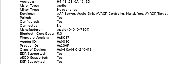 When I check the firmware for my Airpods, System Information shows me 0xB087. How does this relate to the version numbers given above?