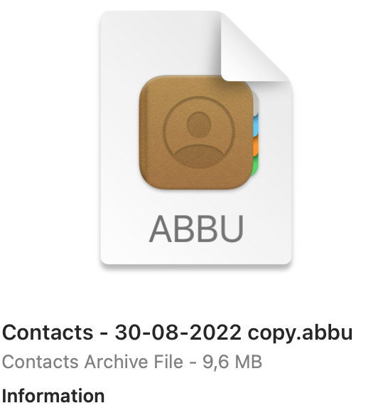 I'm trying to load my contacts archive (.abbu file) after changing my computer and updating to Monterey, but nothing happens. Whenever I select File > Import > Contacts...abbu, etc. I get the usual 'are you sure' message. However, I select yes import and my Contacts stay blank (which is most useful).