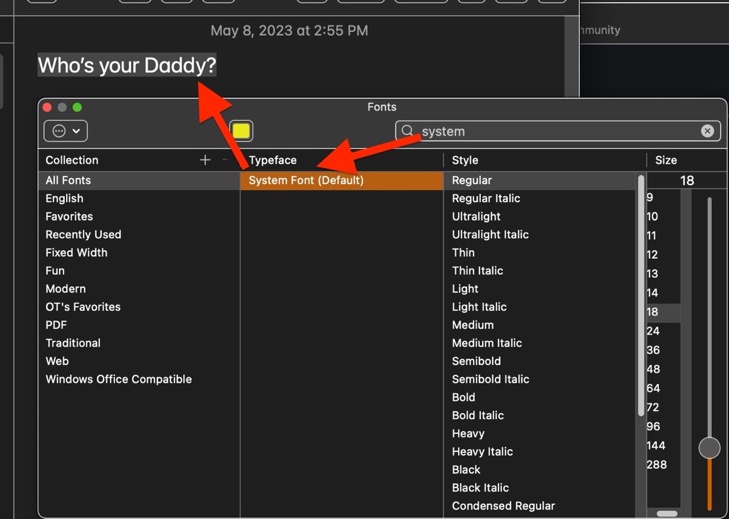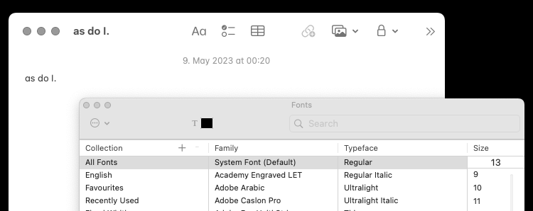 in Monterey, Notes by default use a font named System Font. Looks great. I’d like to use it in TextEdit, too, but it doesn’t seem to be available there. Is there a way to access it?