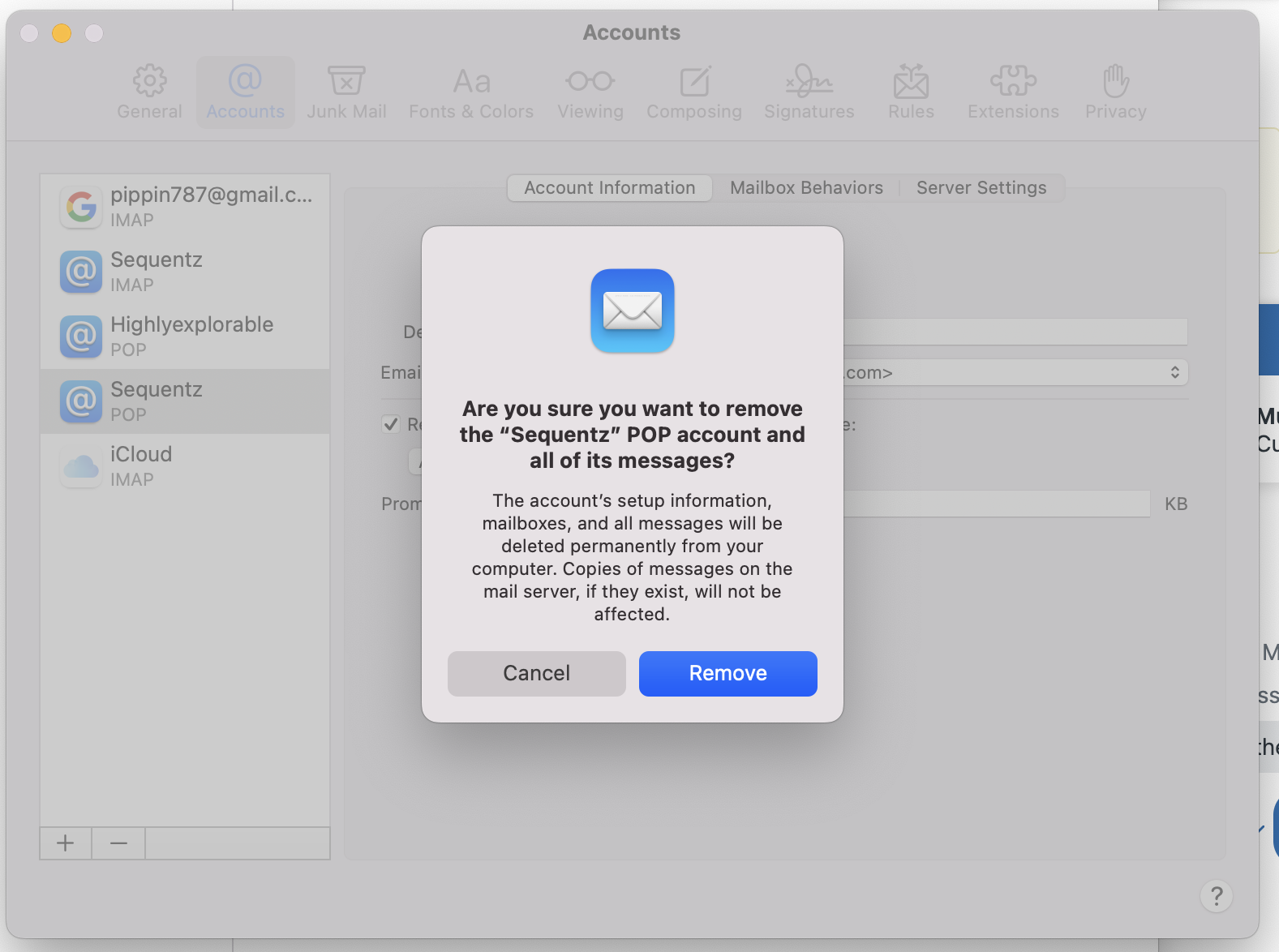 Now I am about to delete the current(old) POP account. It is warning me that doing this will delete all settings and messages. So... everything in my Inbox will be deleted? I can't risk this.