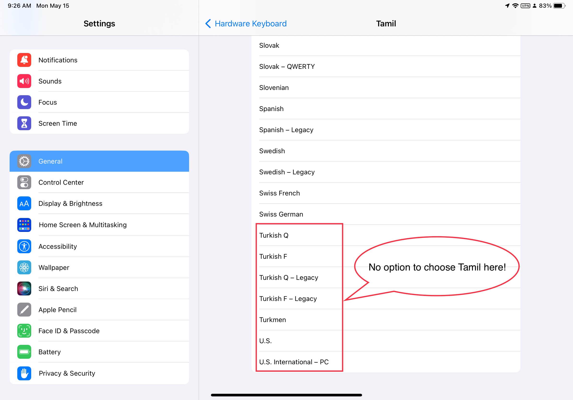 PS: When choosing the software keyboard in iPad, I am able to type in Tamil99 keyboard layout. The problem is with Magic Keyboard.