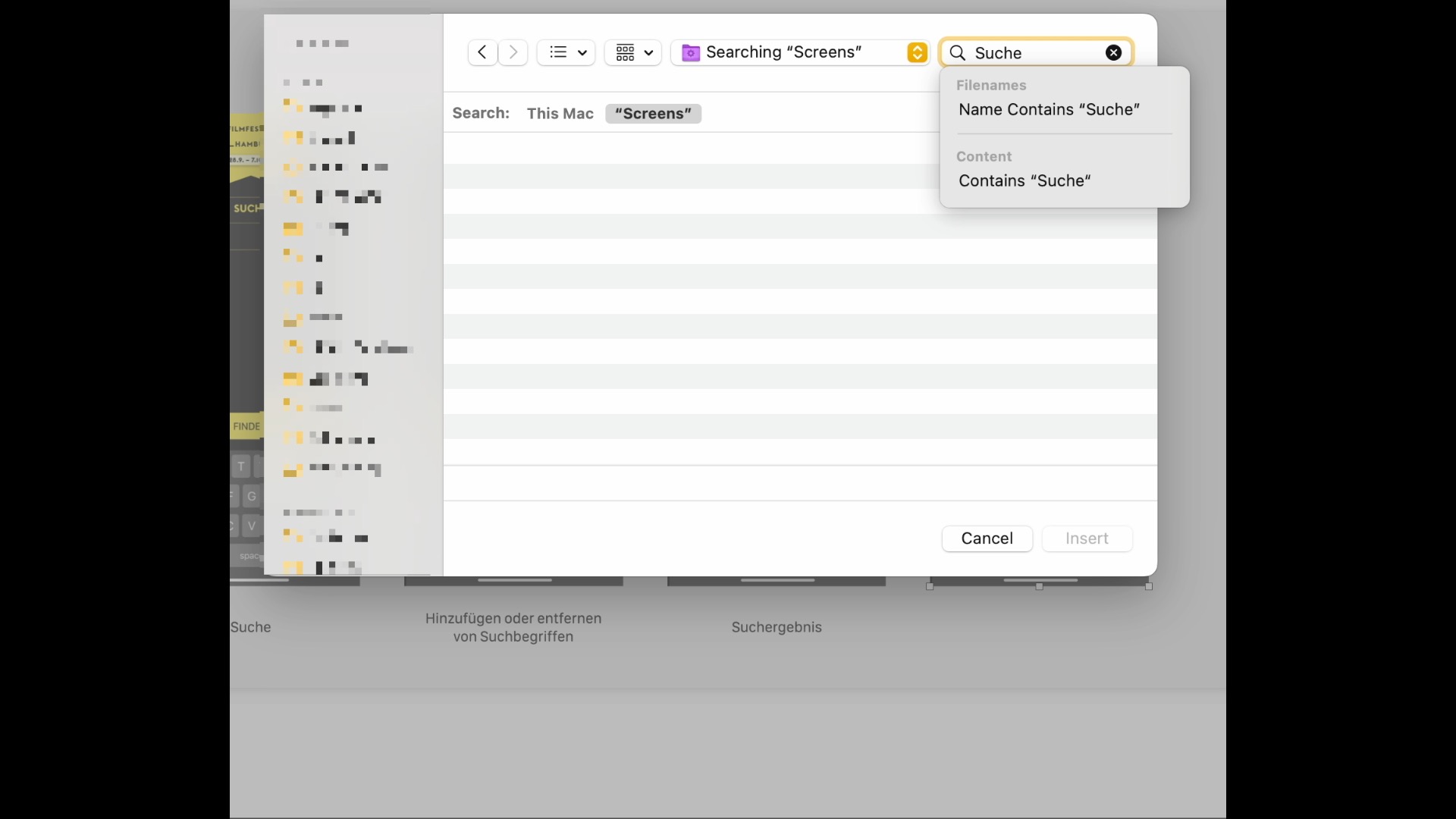 As you can see in the Screenshots I can't filter my content in my finder window.