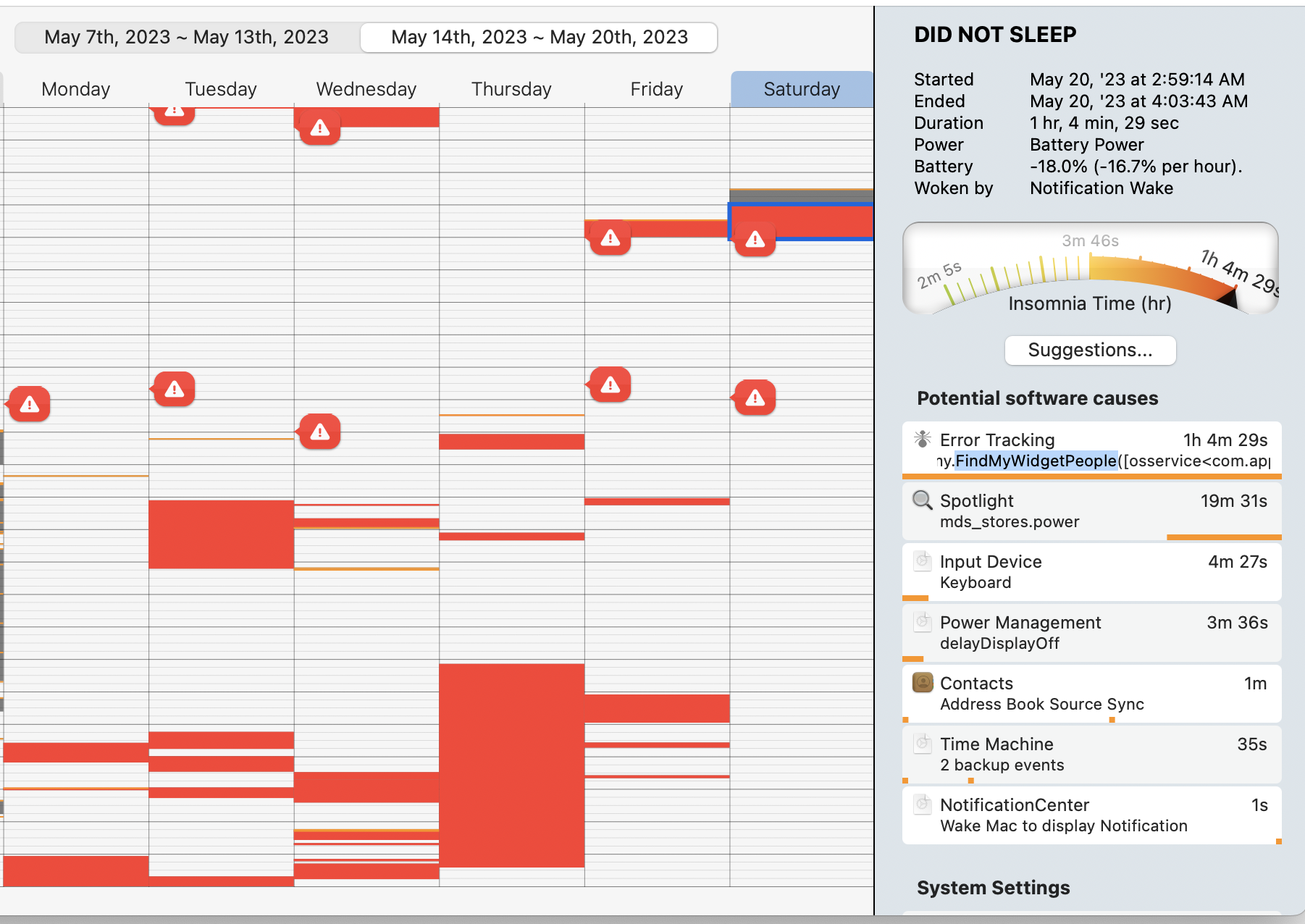So my mac is literally sleeping 0% of the time, which is killing the battery in no time.