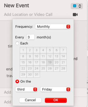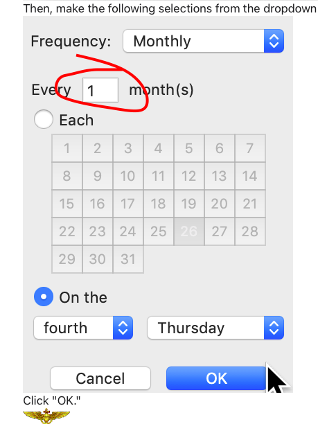 Use answer from above link but change the month to 3 (for quarterly). The bubble will not be filled in for the month but it still works. (See end results in next photo)