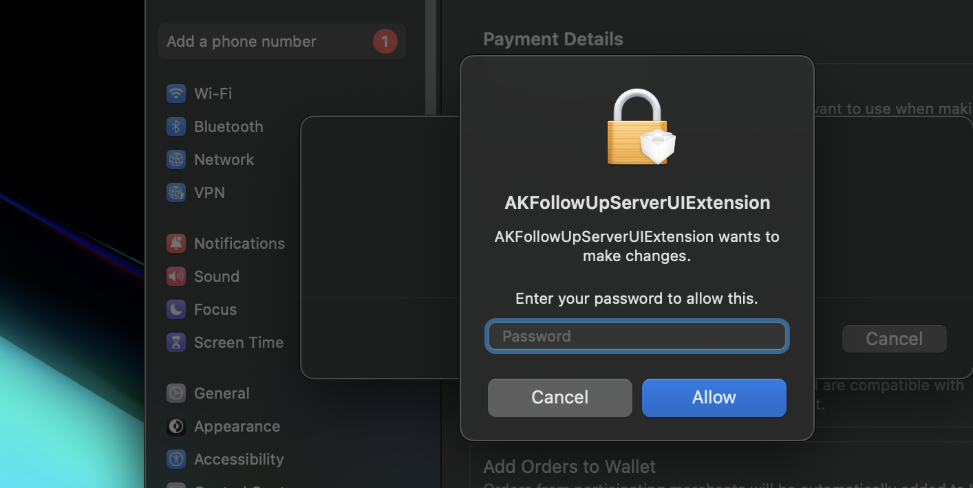 It says "AKFollowUpServerUIExtension wants to make changes"