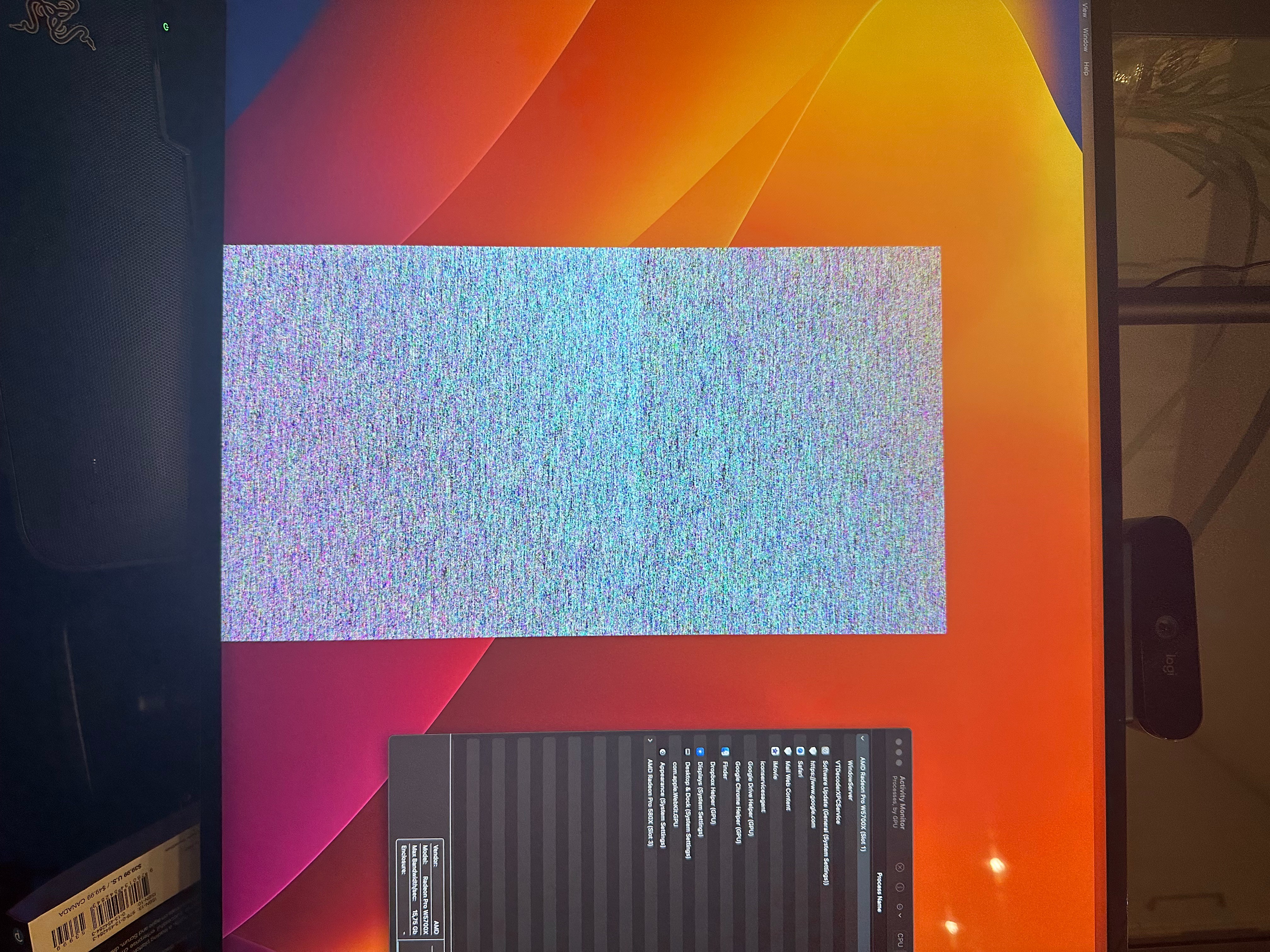 No idea what's going on. SEcond monitor is working perfectly normal. Both are connected to AMD Radeon Pro W5700X.