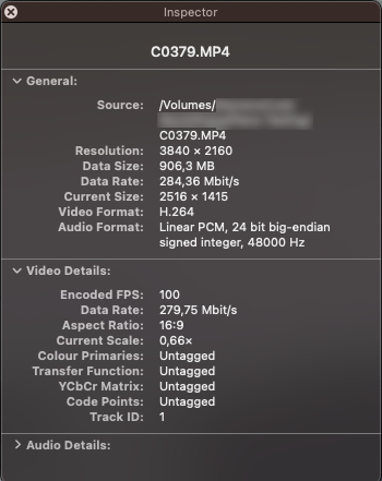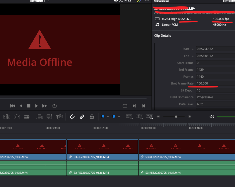 PROBLEMS to playing video codec sony a7s3 at 100fps- macos ventura 13.4