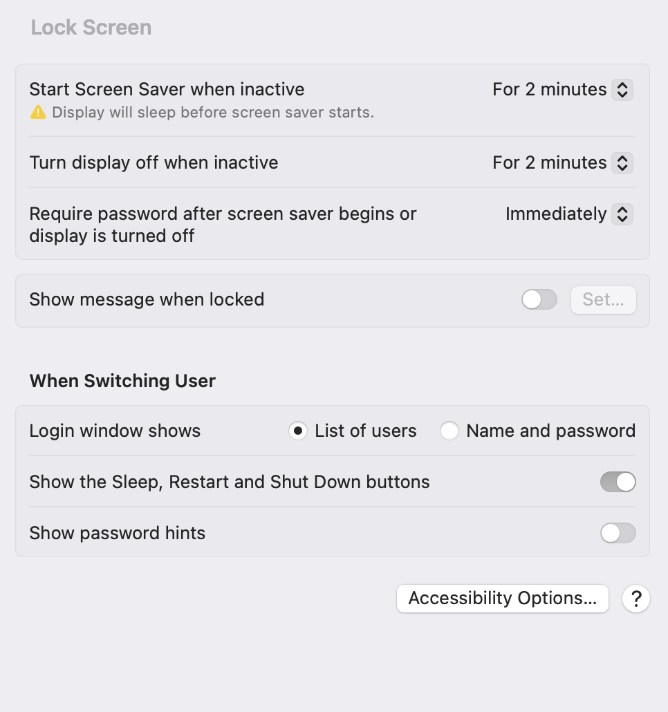 Just turning on the iMac enables anyone to access all my files, e mails, everything. Clearly a disastrous situation from a security perspective.