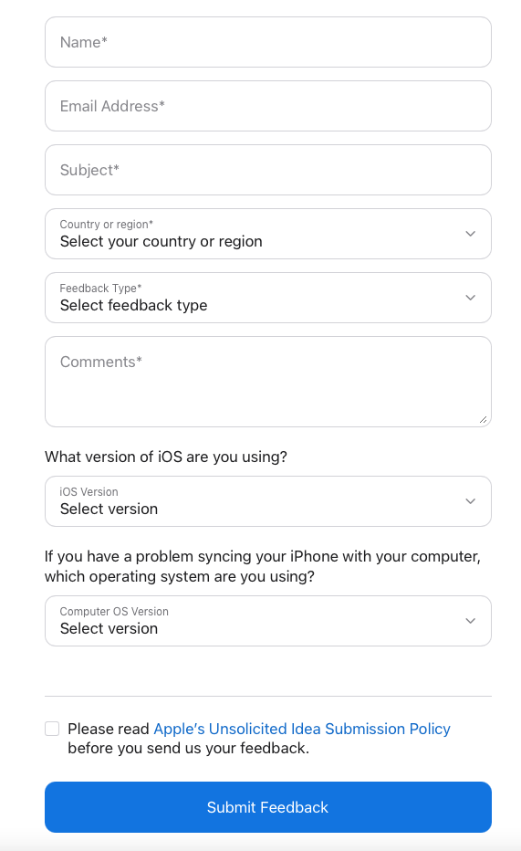 I'm not sure if you understand. You will get a response back from Apple acknowledging the receipt of your suggestions, but they will not respond any further. The feedback process has ended.
