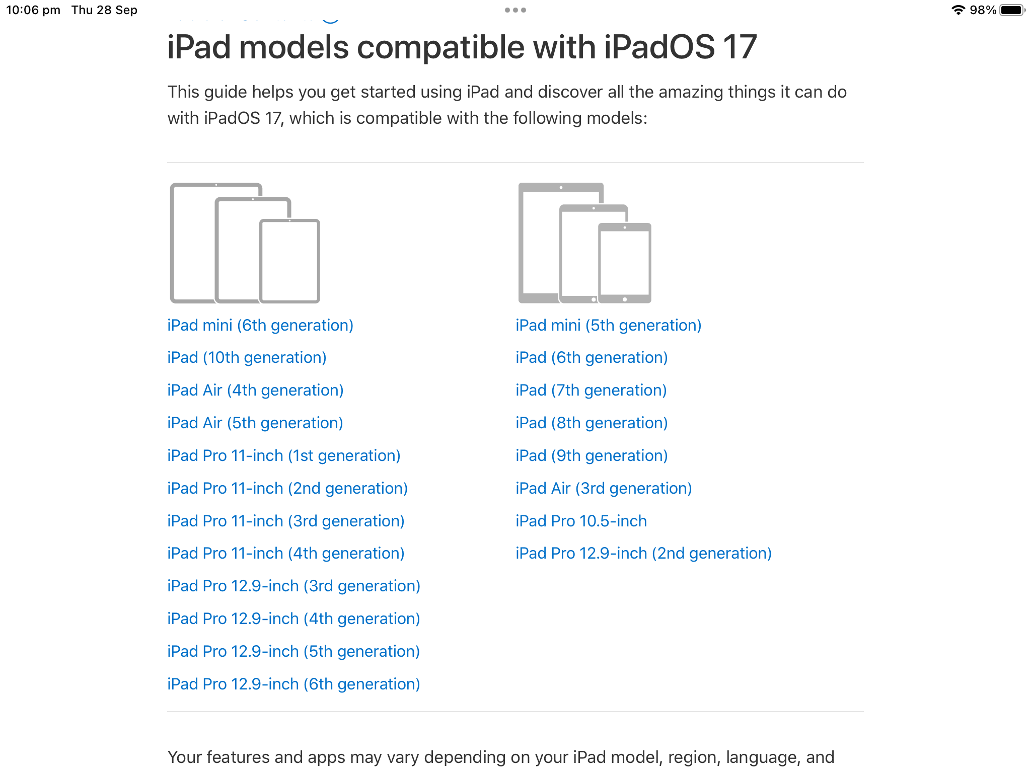 Is there some setting that may have been modified during a software update that somehow is preventing the links from functioning properly on the IPad?