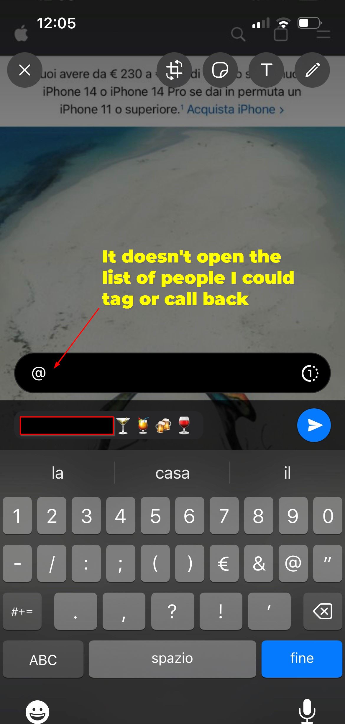 HI, I have an iPhone 13 with IOS 16.3.1, when I take a screenshot and share it on Whatsapp, or with a friend or in a group, by typing the "@" I can't tag or call a person, before the update I did it quietly . How can I solve this problem?