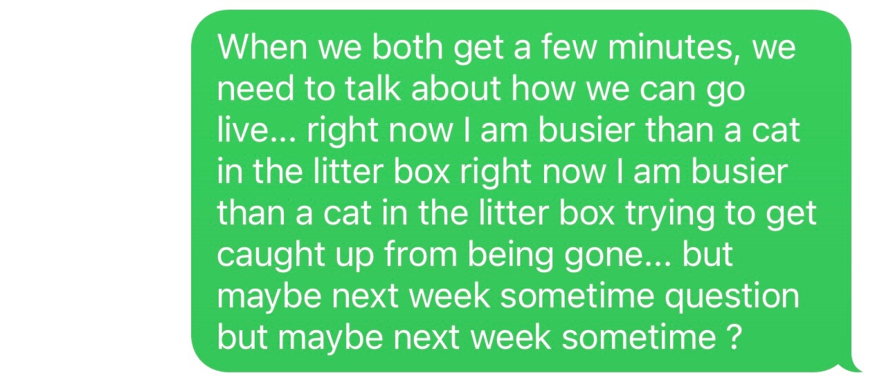 that is what I JUST sent to my daughter and I’m sitting in my living room by myself. The TV isn’t on and there is absolutely no noise right now. I always talk slowly because well, I try to think before I speak to make sure it’s typed like I said it. I once almost sent a text with the word “masturbating” to my boss!!! And NO that wasn’t the word I was trying to say.