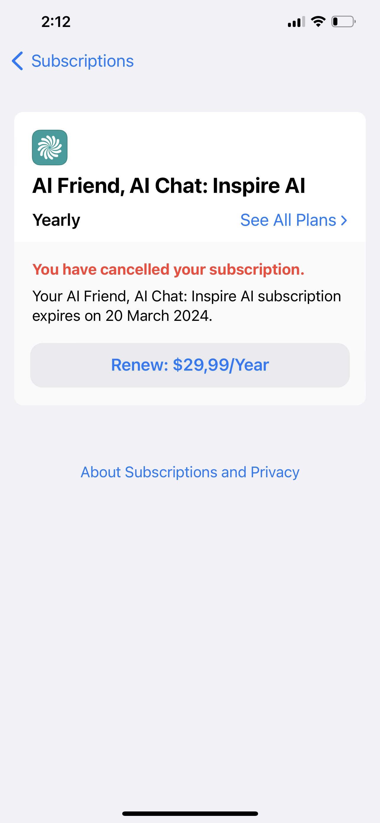 Hello, I want to cancel my subscription Chat AI and Inspire AI. Please fix it ASAP. Thank you