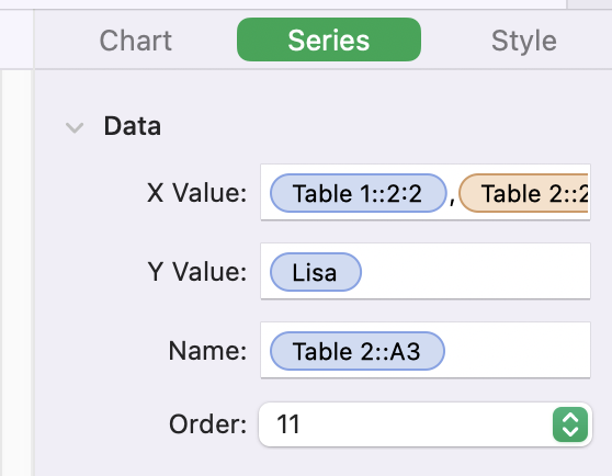 Numbers chart is not displaying data points from a second table data series, even though the chart legend includes the data.