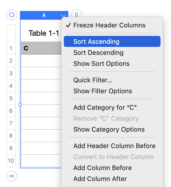 Select the body cells of the sorted column, then press command-C to Copy the contents of those cells.
