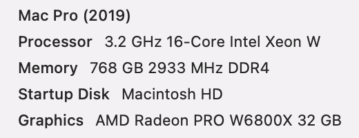 Note that the M2 Ultra Mac Pros top out at 192 GB of RAM. If your Intel Mac Pro has 768 GB of RAM – and you are running the sort of specialized applications that actually need that much RAM – the M2 Ultra Mac Pro might not be the right fit for you.