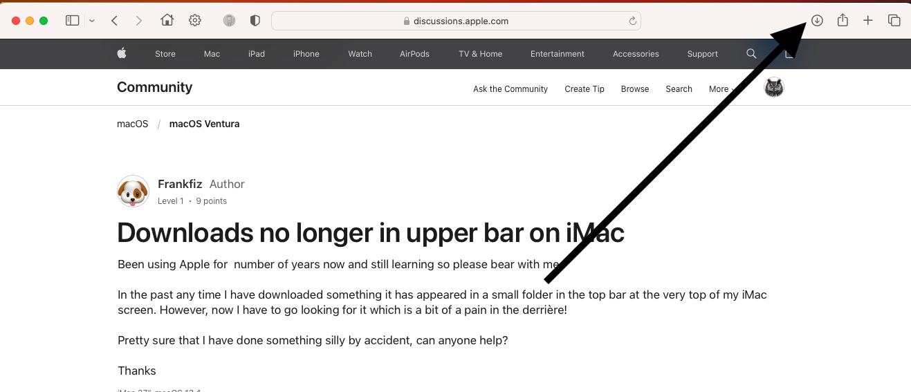 In the past any time I have downloaded something it has appeared in a small folder in the top bar at the very top of my iMac screen. However, now I have to go looking for it which is a bit of a pain in the derrière!