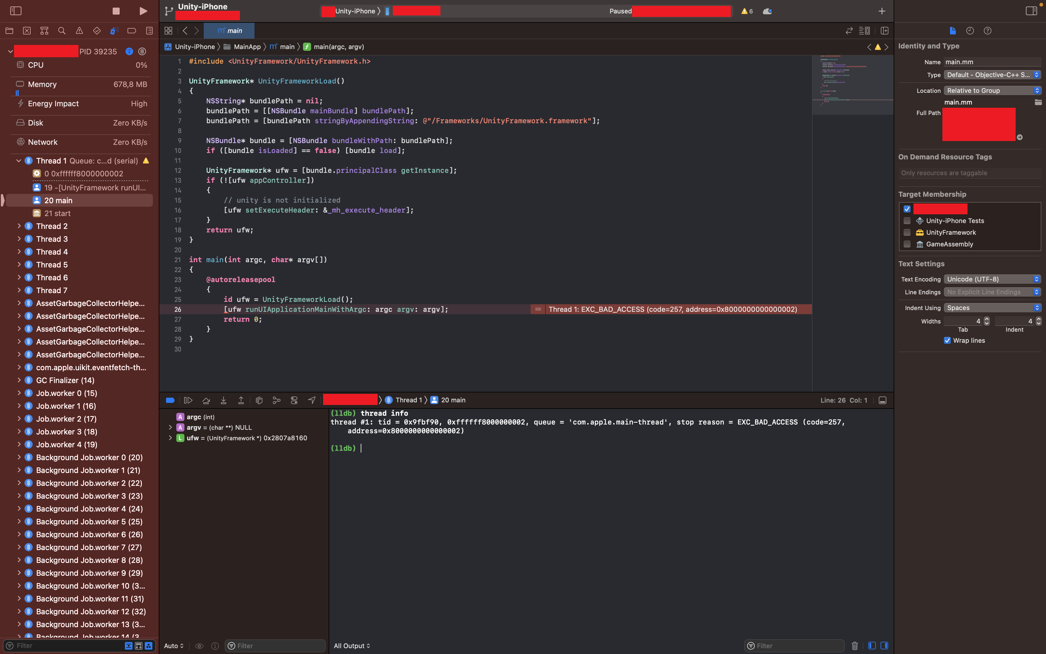 We disabled the GameCenter Login code and game opens perfectly. No errors. The main problem is app crashes when we attempt to login to Apple Game Center.