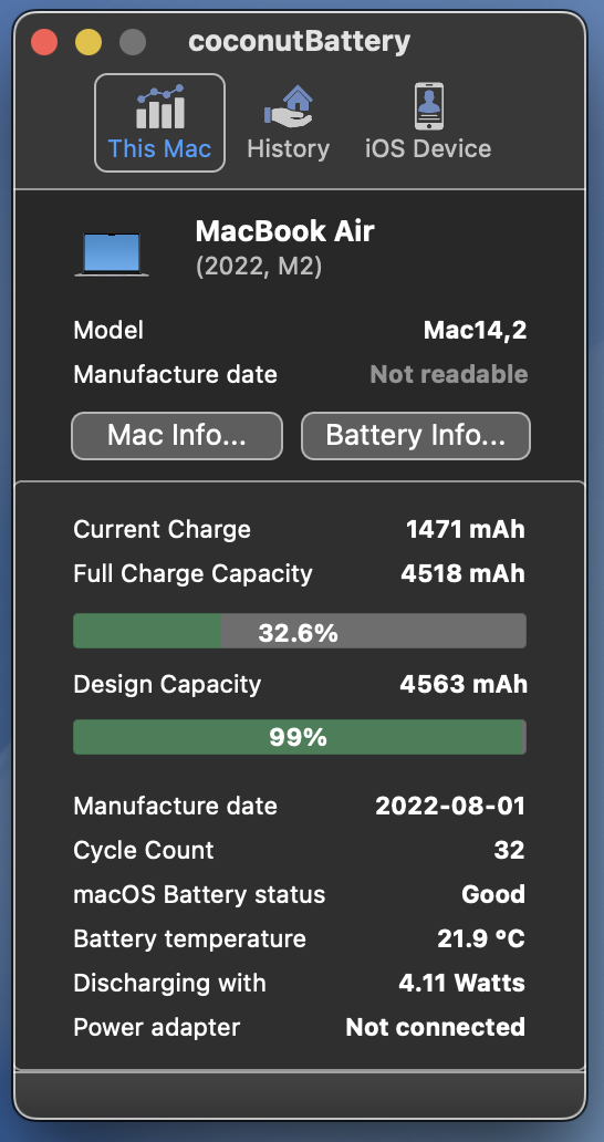 If I compare with my iPhone 13 Pro Max, which is 19 months old and still at 100% health, it makes me think whether this is "normal" on a Mac or I have some battery issue.