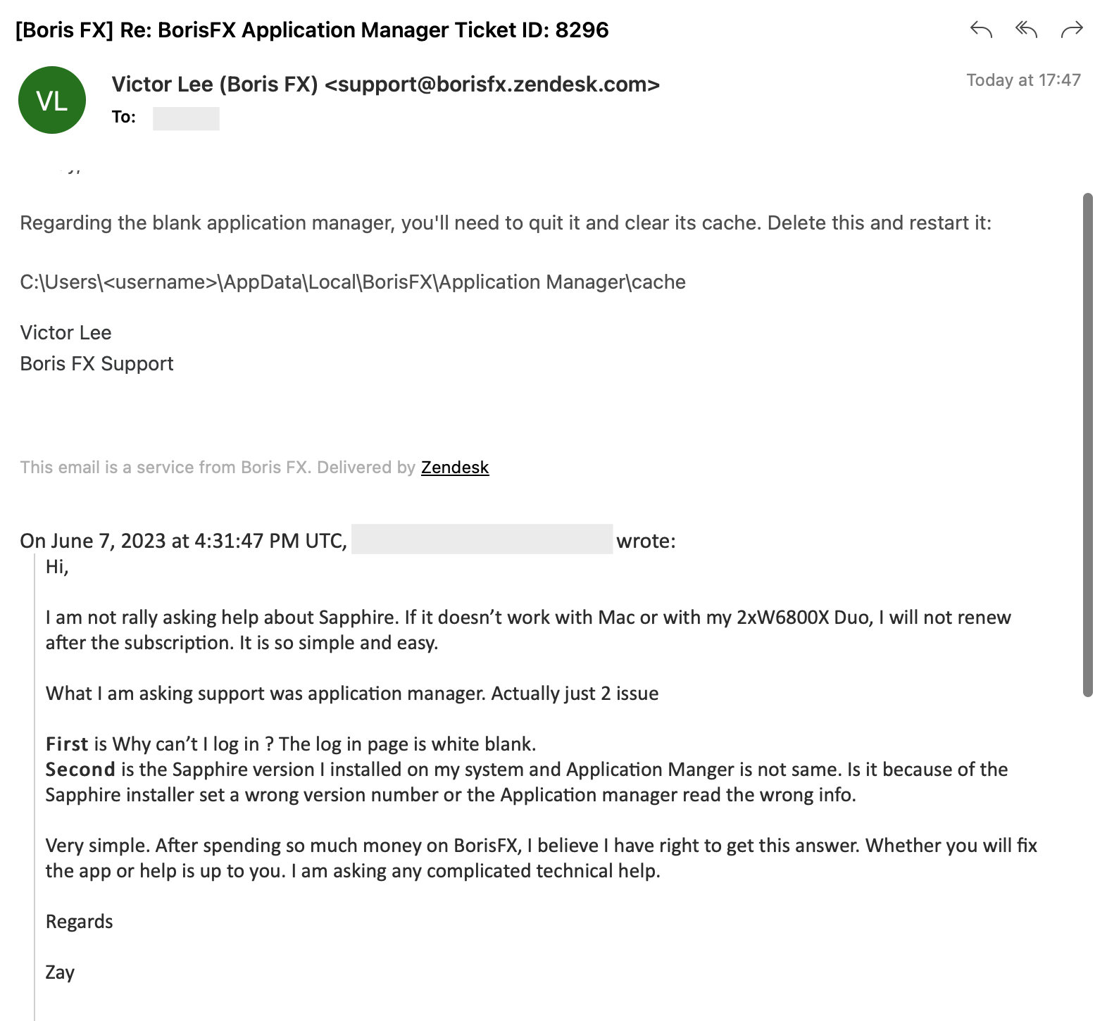 I have contacted them since 3 Jun 2023 as I was suggested to do so from BorisFX FB page as it start annoying me. They cannot even help me to fix till this point. However I got email from their support today and suggested me to clear the cache and the issue will fix.