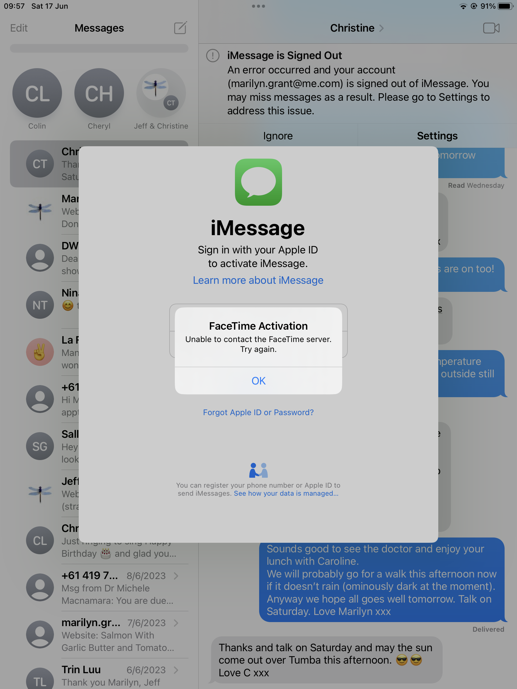 Unable to contact iMessage server