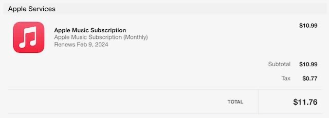 $10.99 for the Apple Music subscription, $0.99 for your State and local governments.