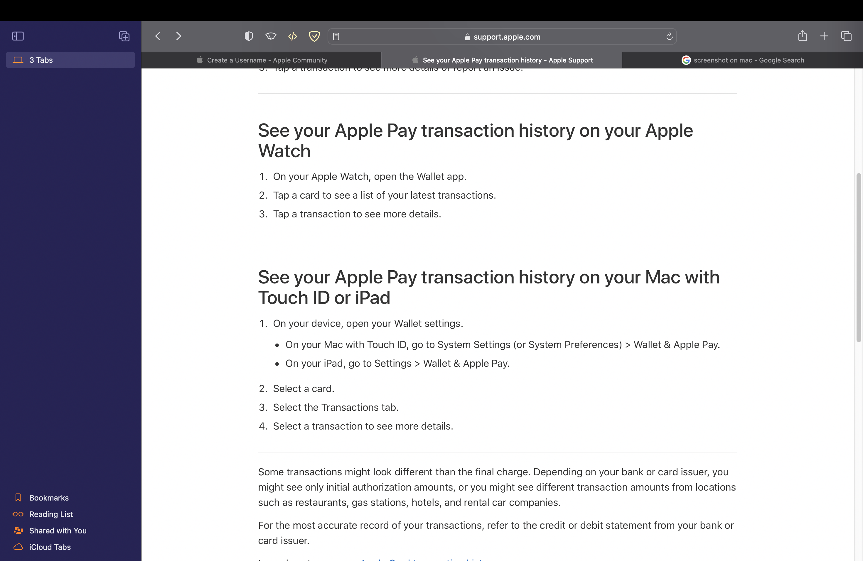 << The Apple website clearly states that you can see transaction history on a Mac or an iPad >>