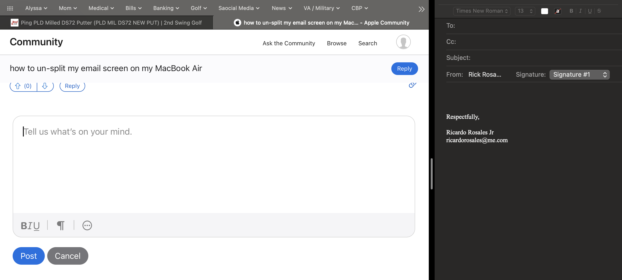 since upgrading to latest OS my email screen has split. I want it back to single screen