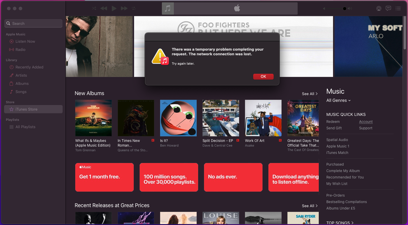 The result is always the same. At present I'm unable to download my music library from iTunes Match.