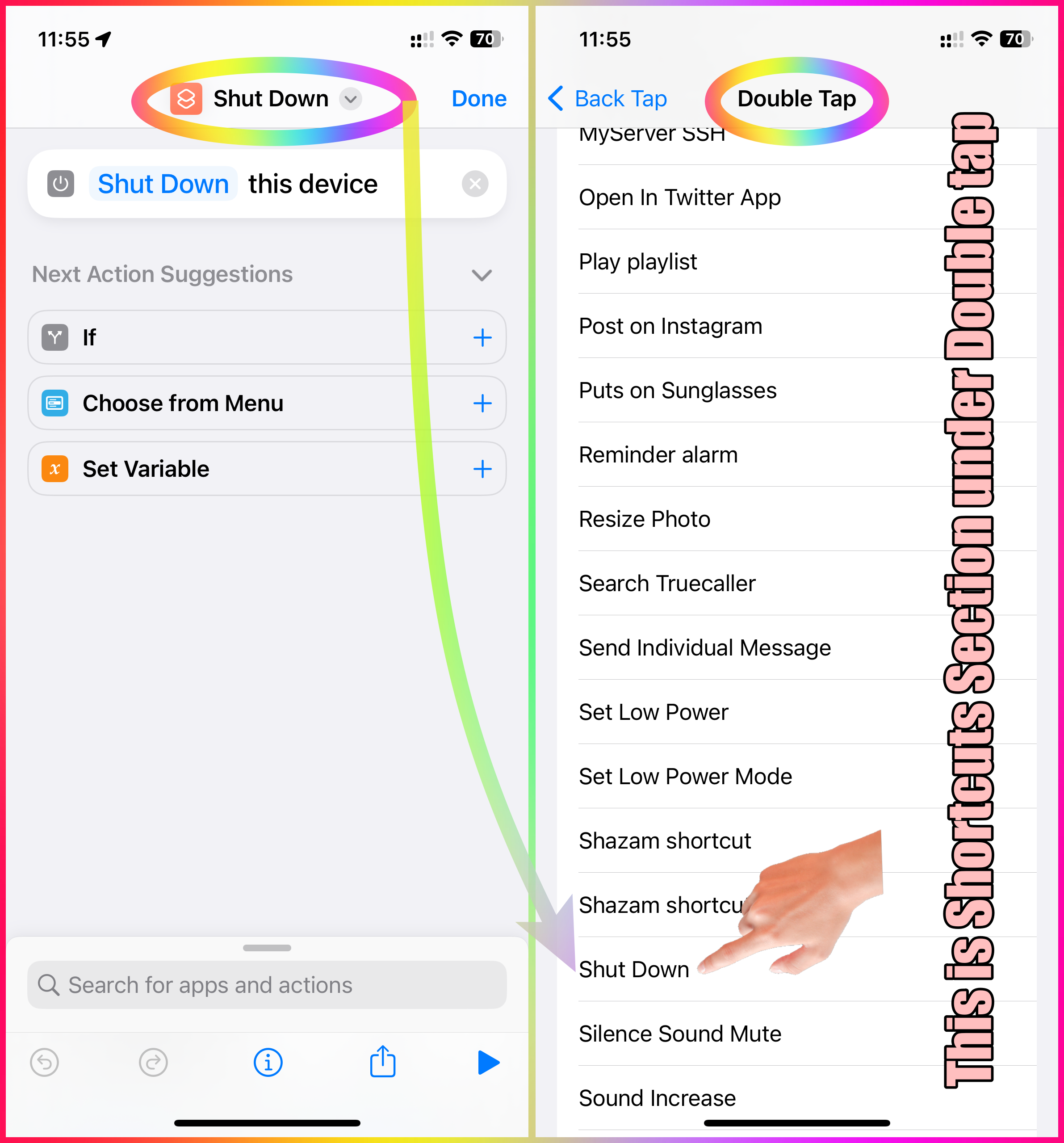 How do you turn off the iPhone using Double Tap? "Turn off" was not one of the options for actions.