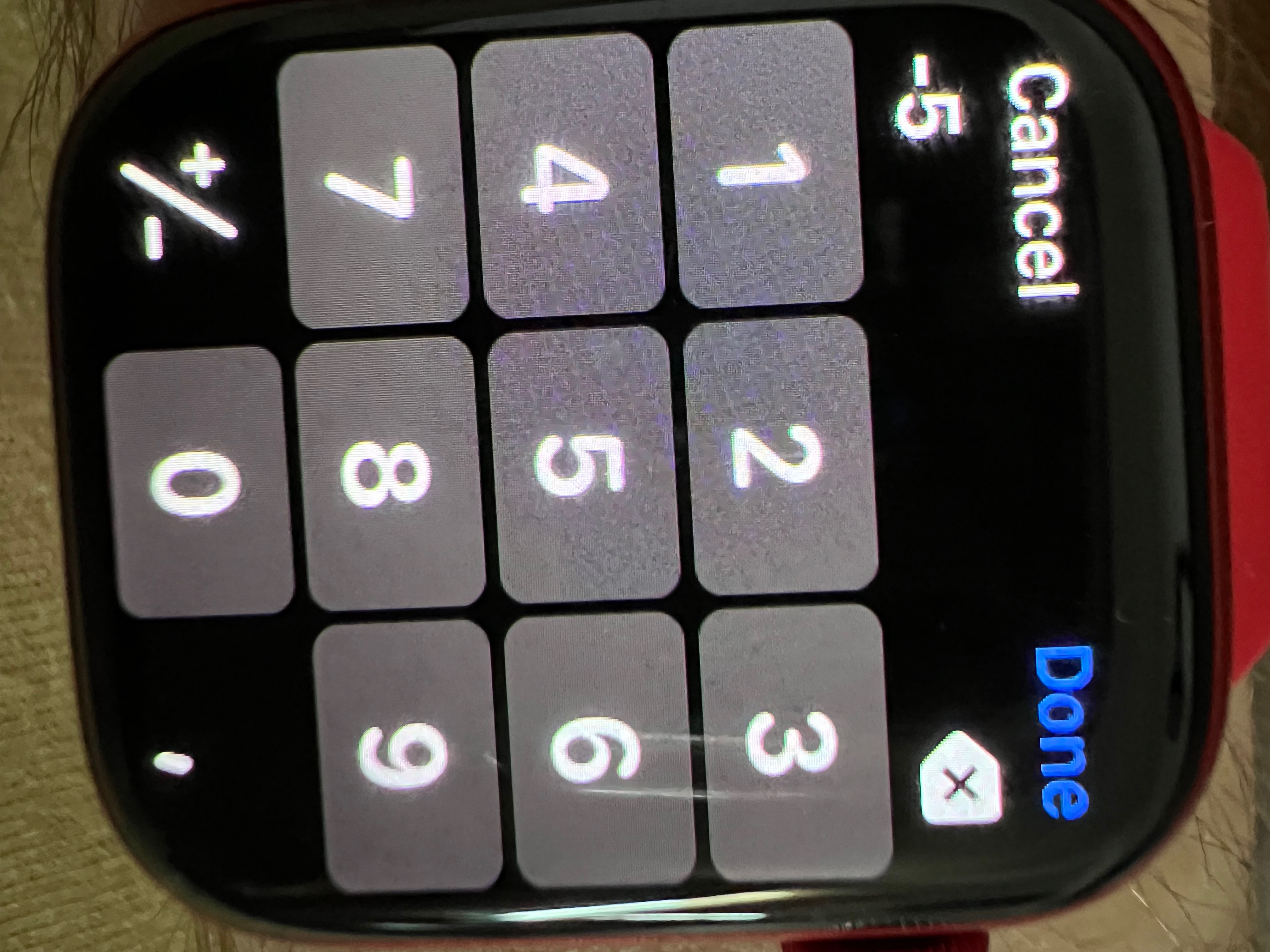 Hello.I have an issue with a certain numeric keyboard that has a +\- in the left botton and a "," in the right bottom.When this kind of keyboard appears somewhere where I want to type and I click on it, there is no way to close it after.There is a "cancel" button on the left and a "done" button on the right.None of them works.So the only option is to force the app to close.But I cant exit this numeric keyboard.My watchOS version is 9.5.1