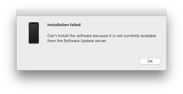"Installation Failed: Can't install the software because it is not currently available from the Software Update server."