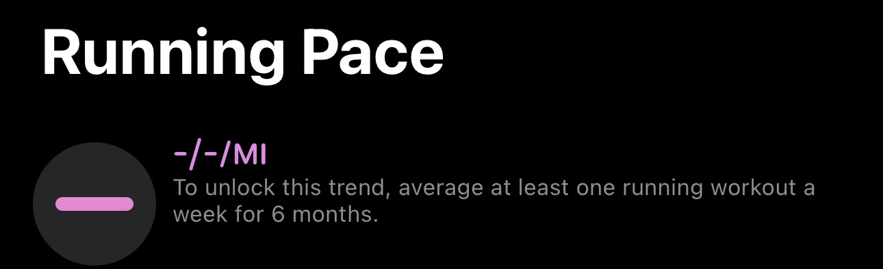 If the trend is "active" it'll show you the yearly and daily averages and some other data, like if the trend is up or down. If you don't have an active trend, as seen above in my "Running Pace," it'll explain how to start getting a trend. In the case of running, you need a valid running workout, once a week for six months.